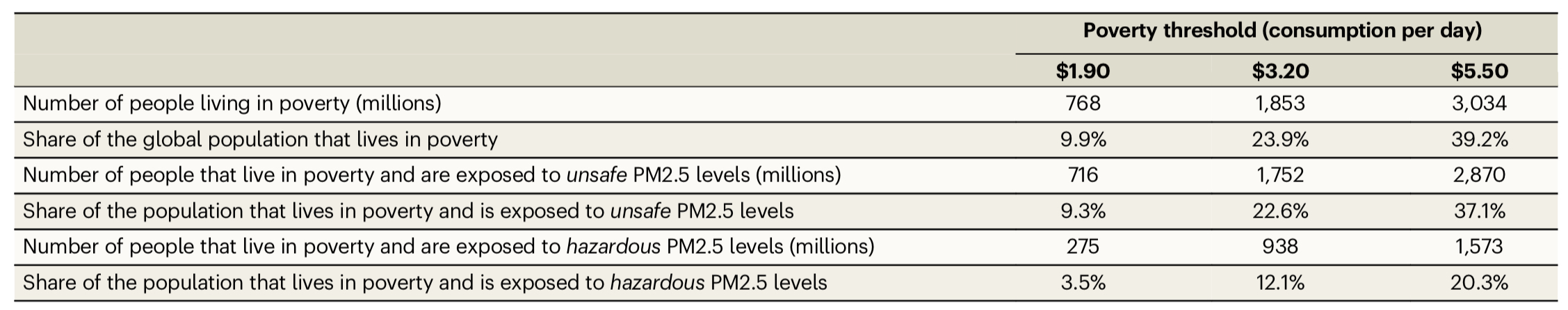 Table 1. PM2.5 exposure headcounts at different poverty thresholds